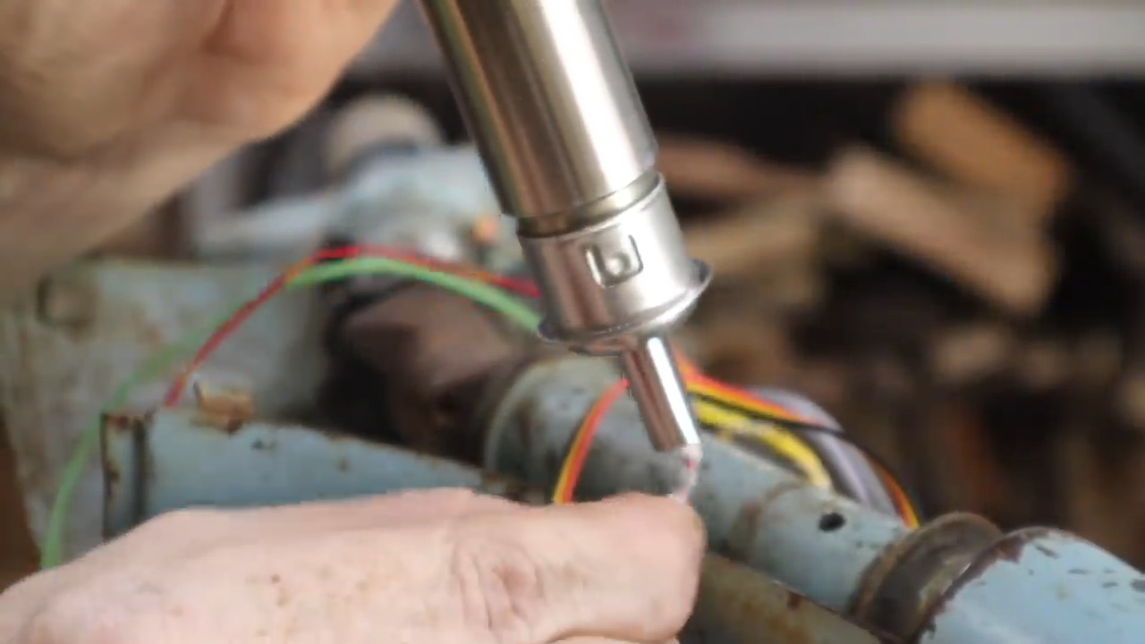 @timsway builds an electric vespa using WEP 959D-II hot air station on solder-based heat shrink tubes.
