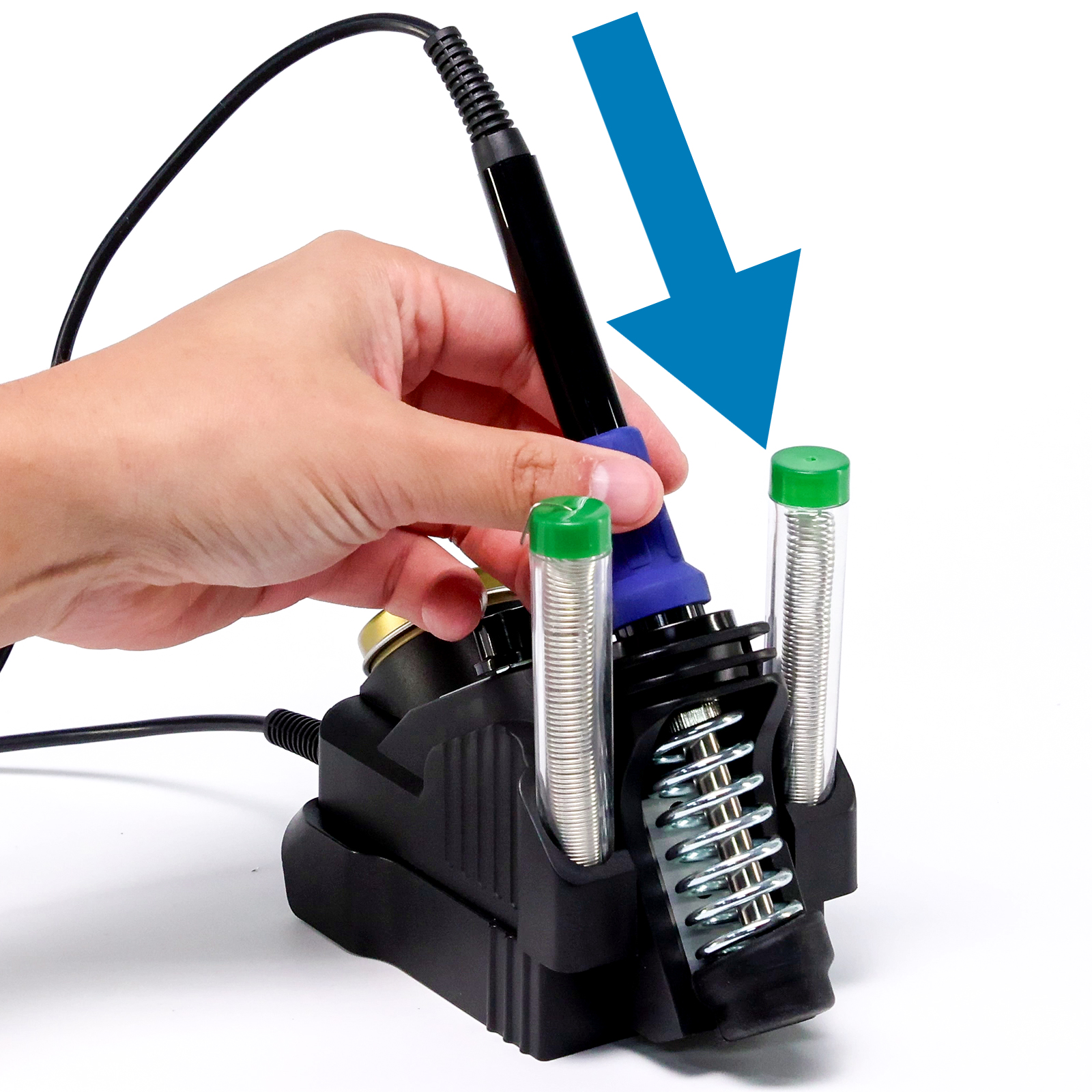 - All-in-one: The unit integrated soldering iron holder, brass wool tip cleaner, and solder wire storage. You don’t need to bring any extra gear to solder on-the-go.
