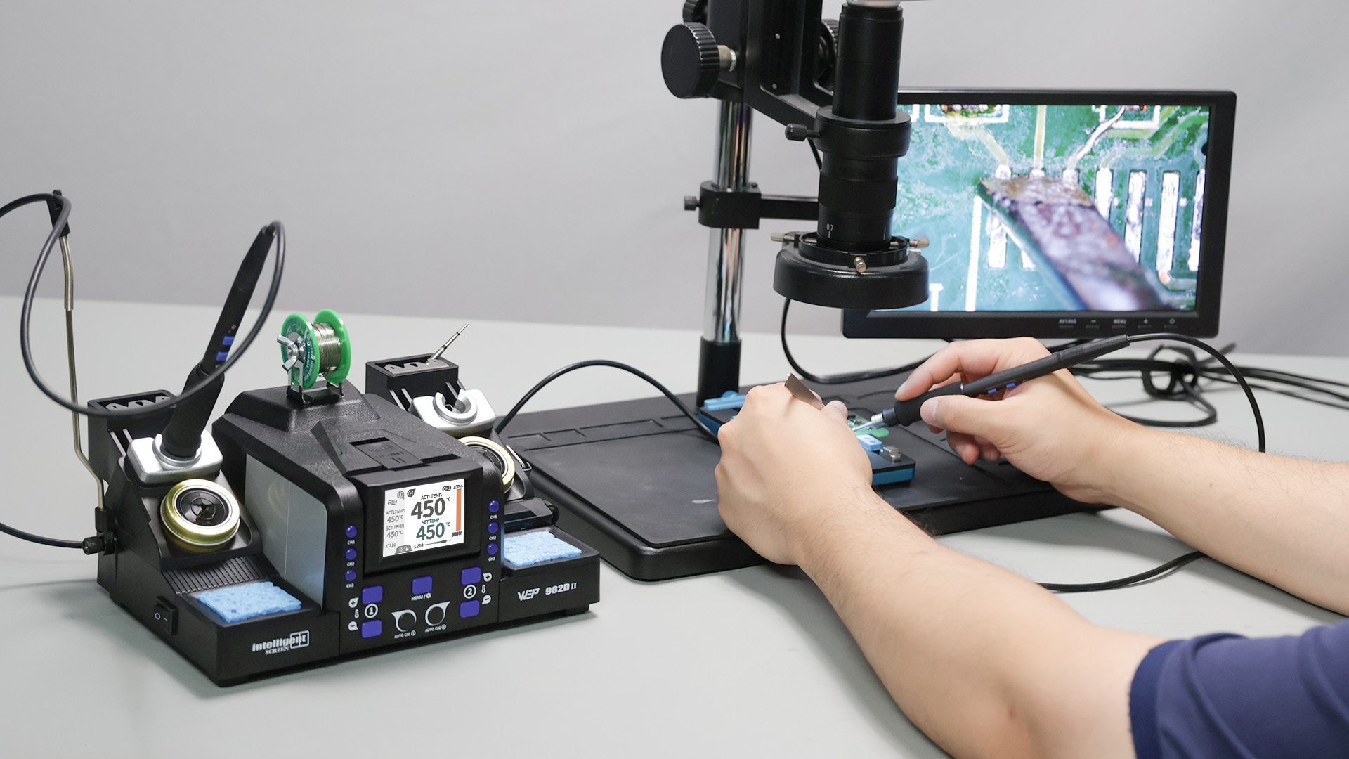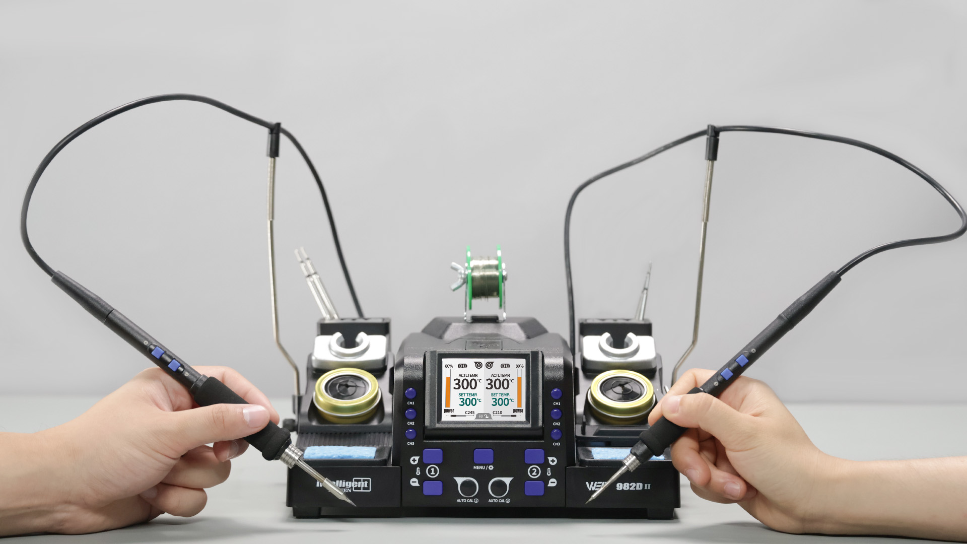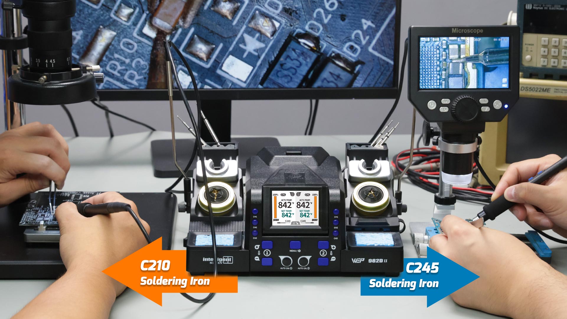 - Ideal for dual-workstation setups, and users who often solder components of different sizes. (Using the C210 & C245 handpieces)