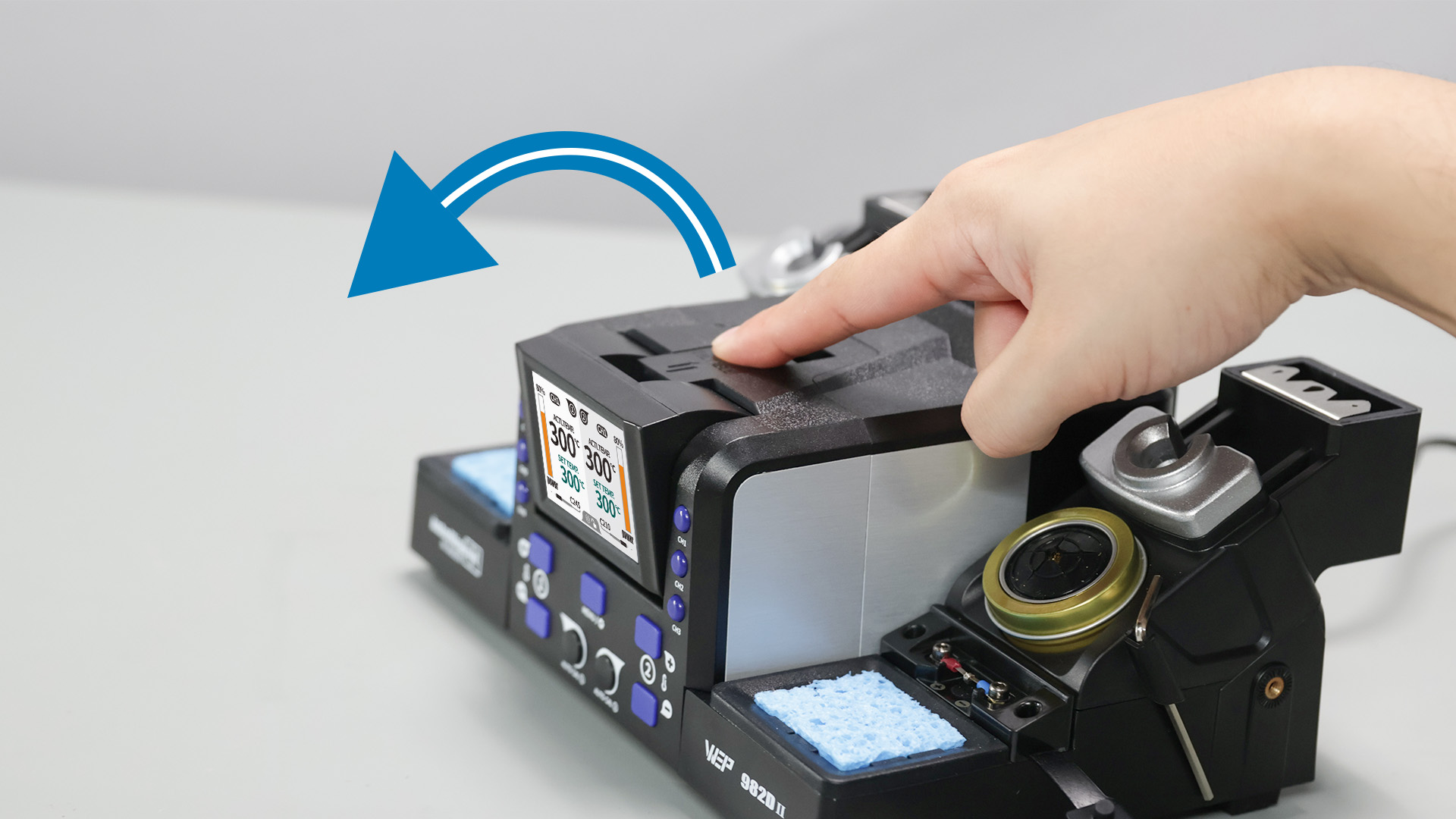 - Both handpieces feature built-in adjustment buttons, enabling setting changes during soldering without returning to the holder.