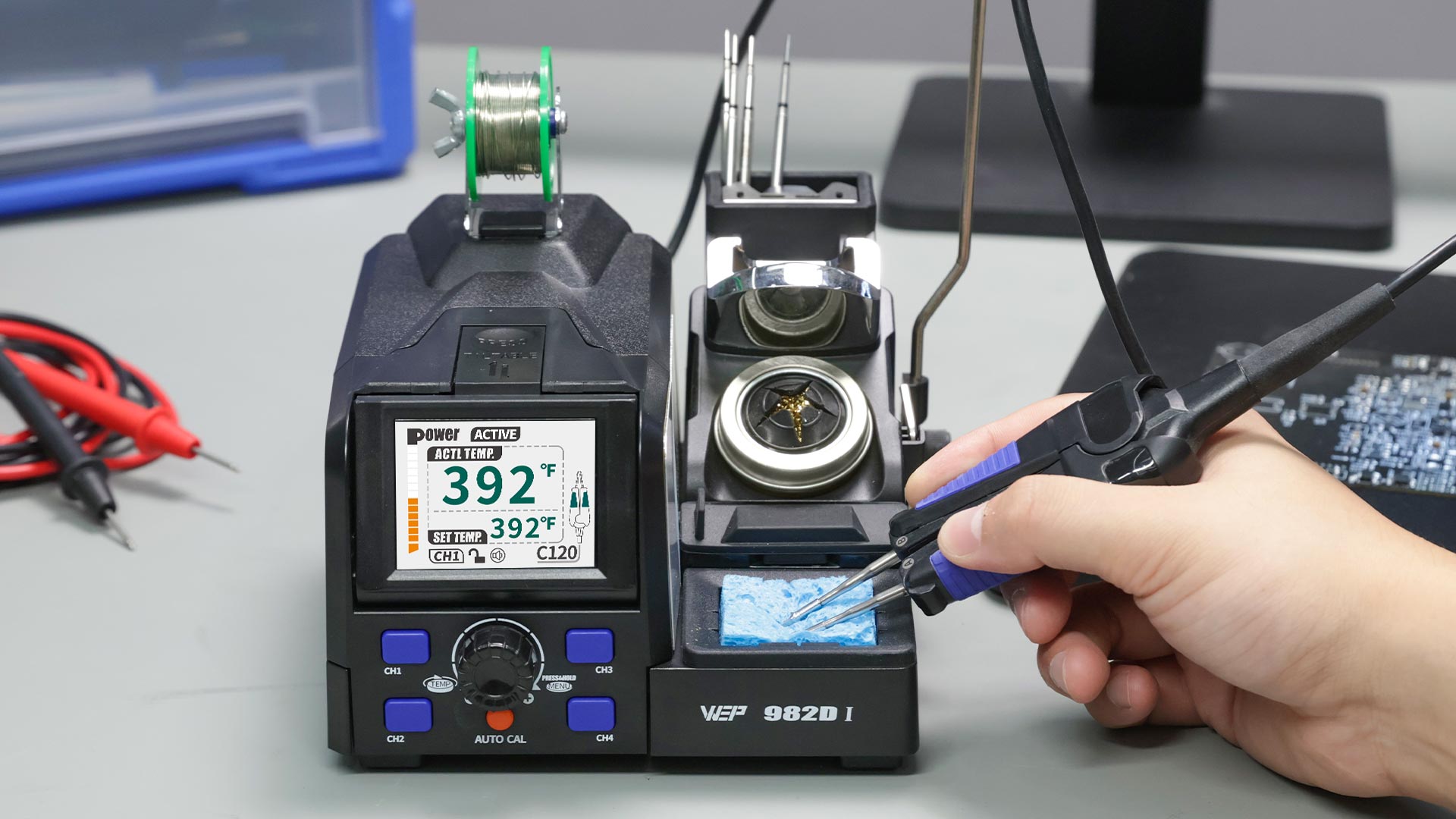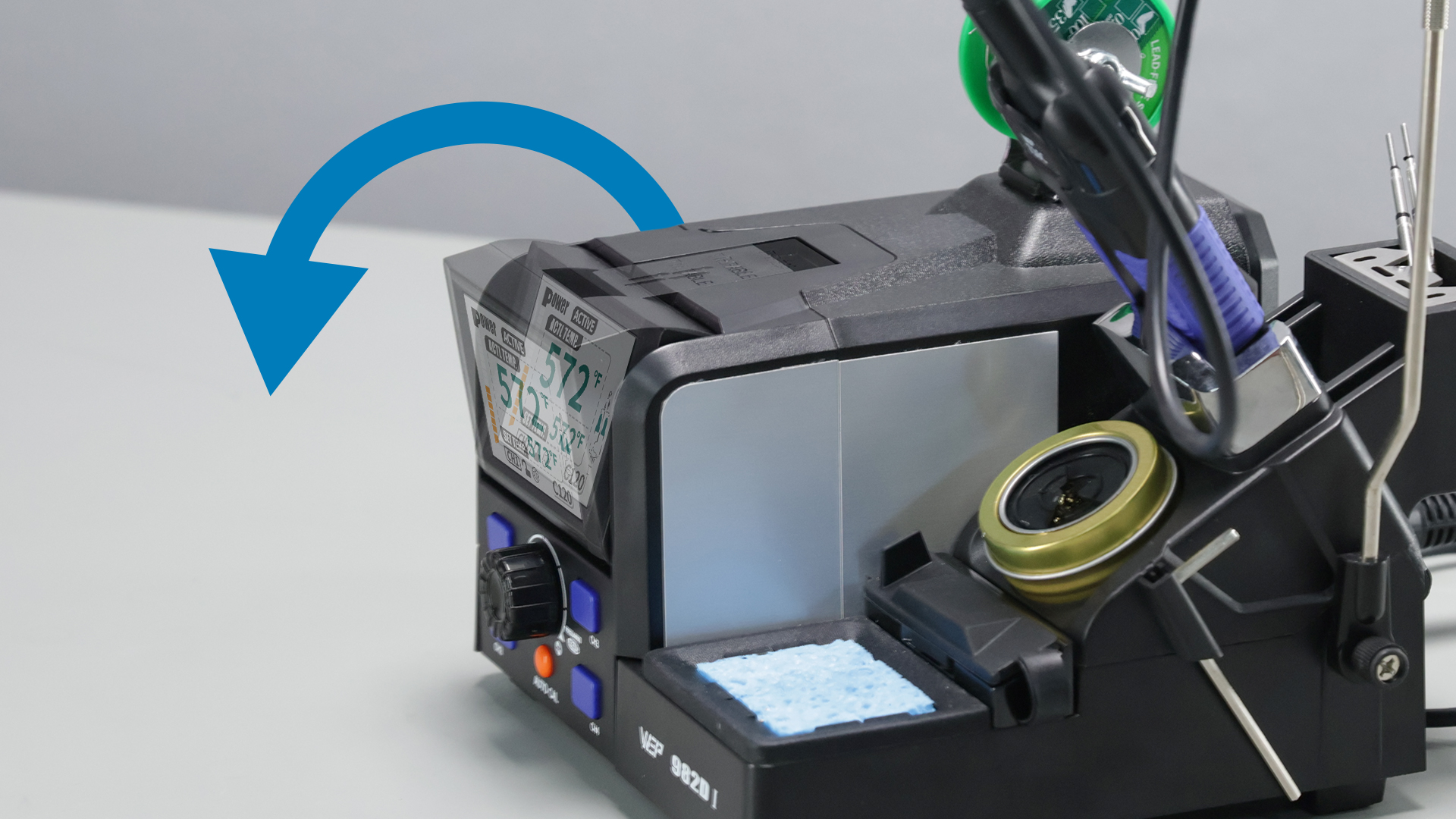 - Integrated with solder wire dispenser, cleaning sponge, brass wool tip cleaner, and soldering iron holder all in one.