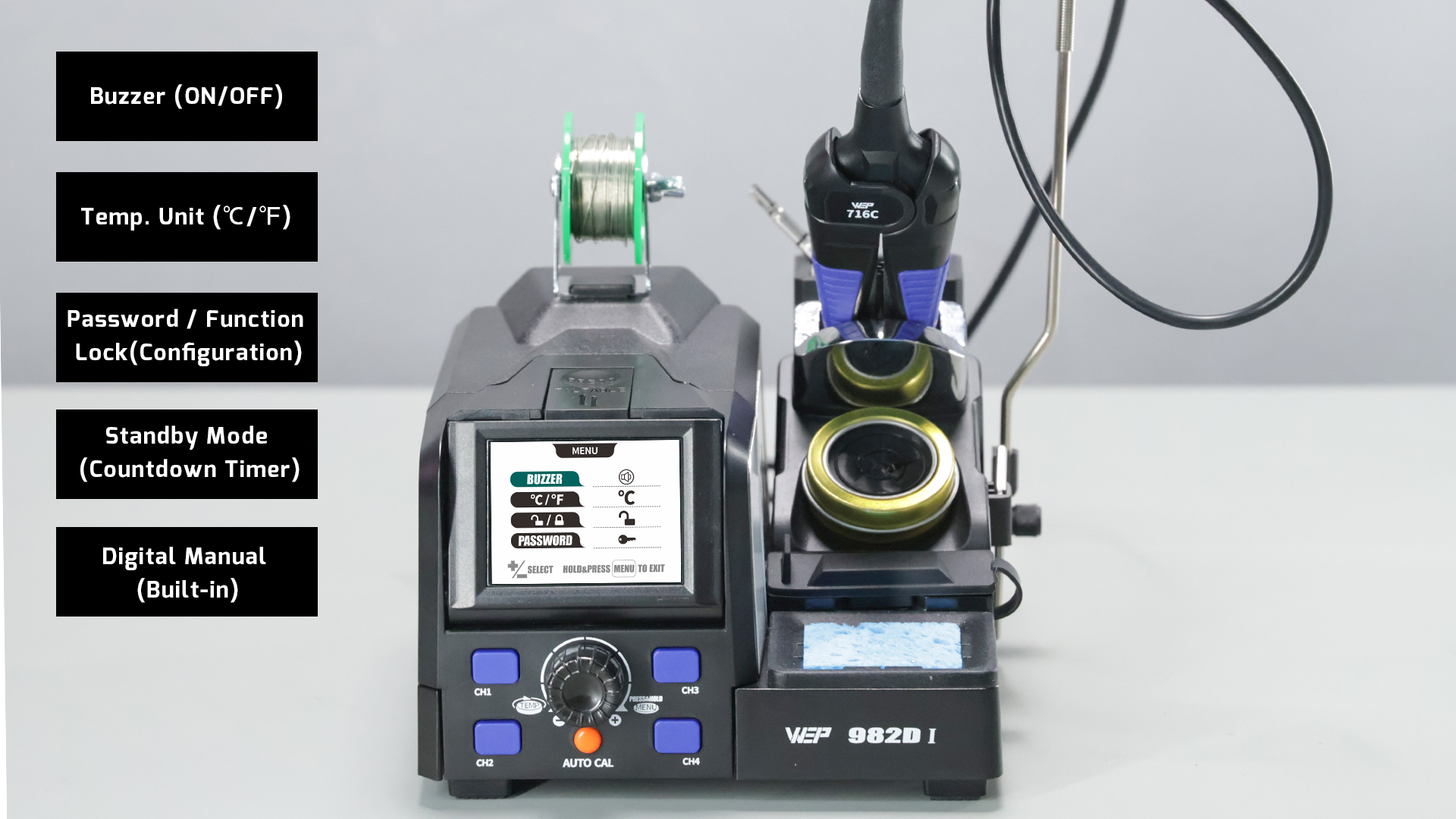 - Automatic Temperature Calibration Function: Maintains consistent actual tip temperature when changing tips. (Built-In Thermocouple)